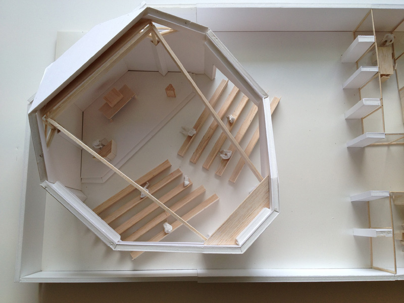 The design has the premises: transparence, clear organisation, more space for meeting, informal programming, opening the form for more visitors, orientation of the liturgic center and an increase of the capacity of the church.